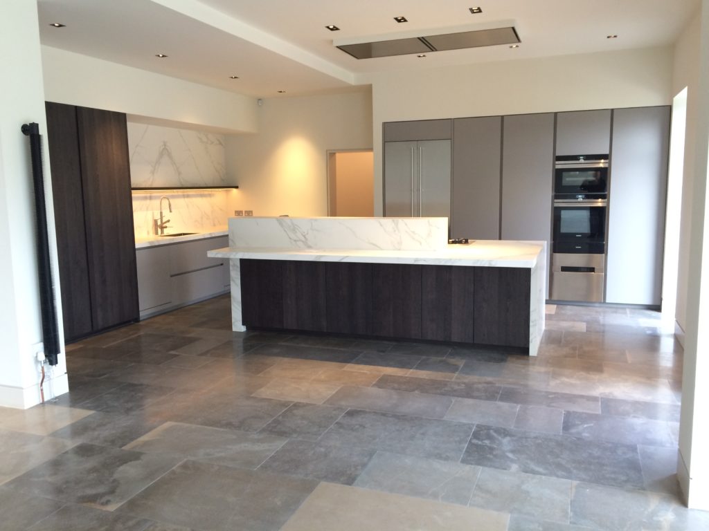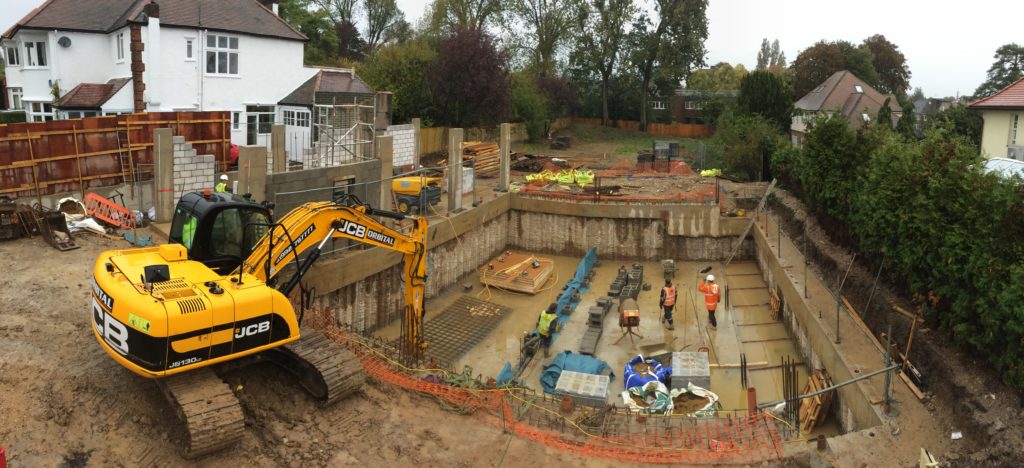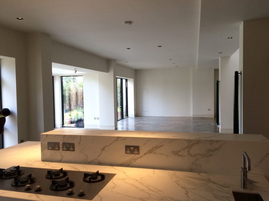 This was a large new build property in north west London. Together with the architect and client we negotiated the works to the specific requirements of both. The works required the demolition of the existing house, the formation of a 100m2 basement on piled foundations incorporating a plant room and bedrooms. The main space was an open plan kitchen and living space with the central stair atrium to the full height of the property. With such open construction in the property the structural design was key. Internal structural Stepoc walls and insitu cast concrete ring beams allowed these large open spaces.
