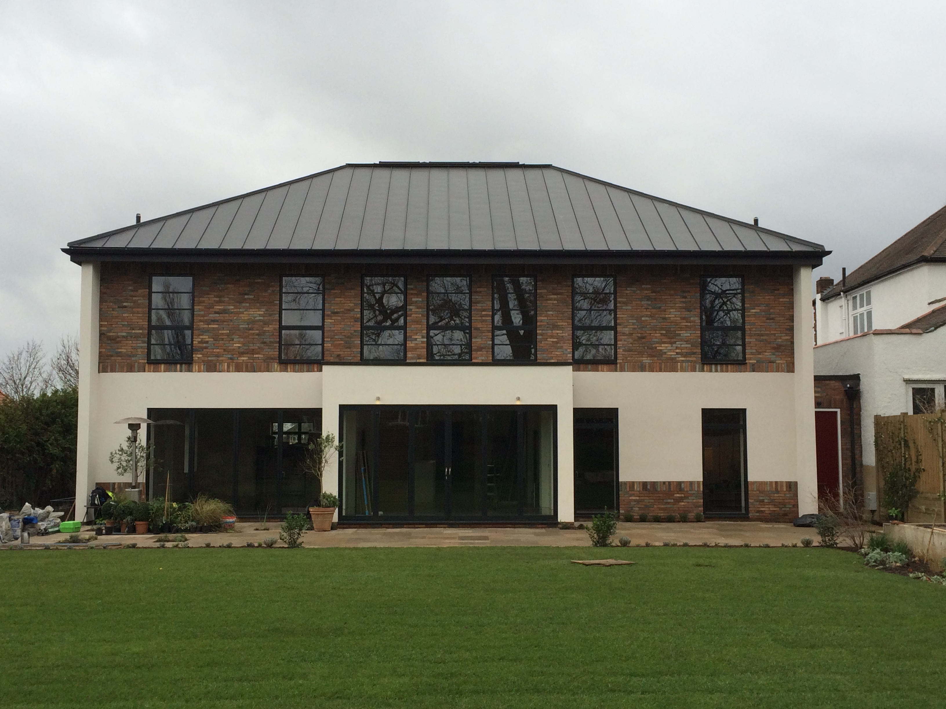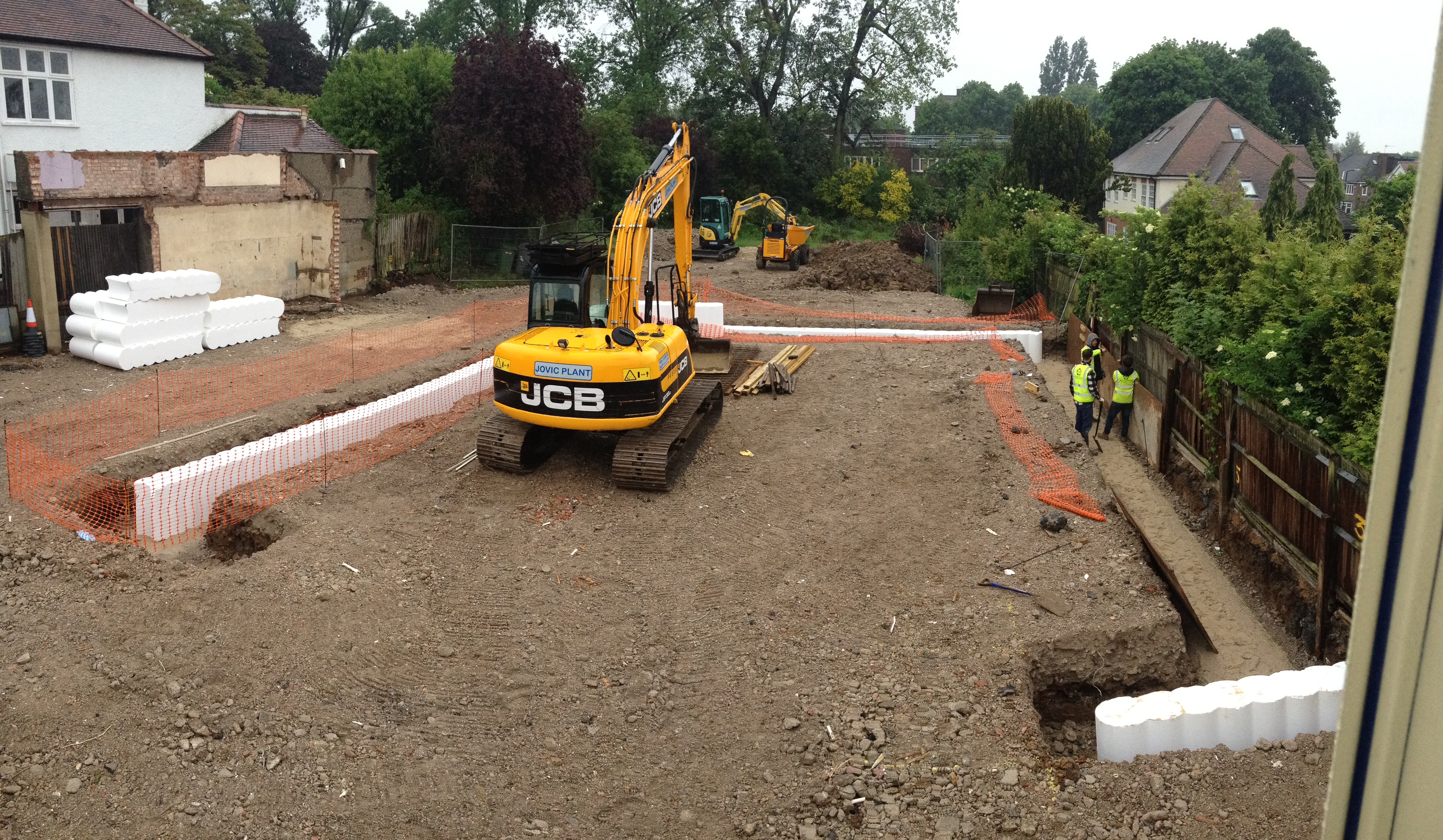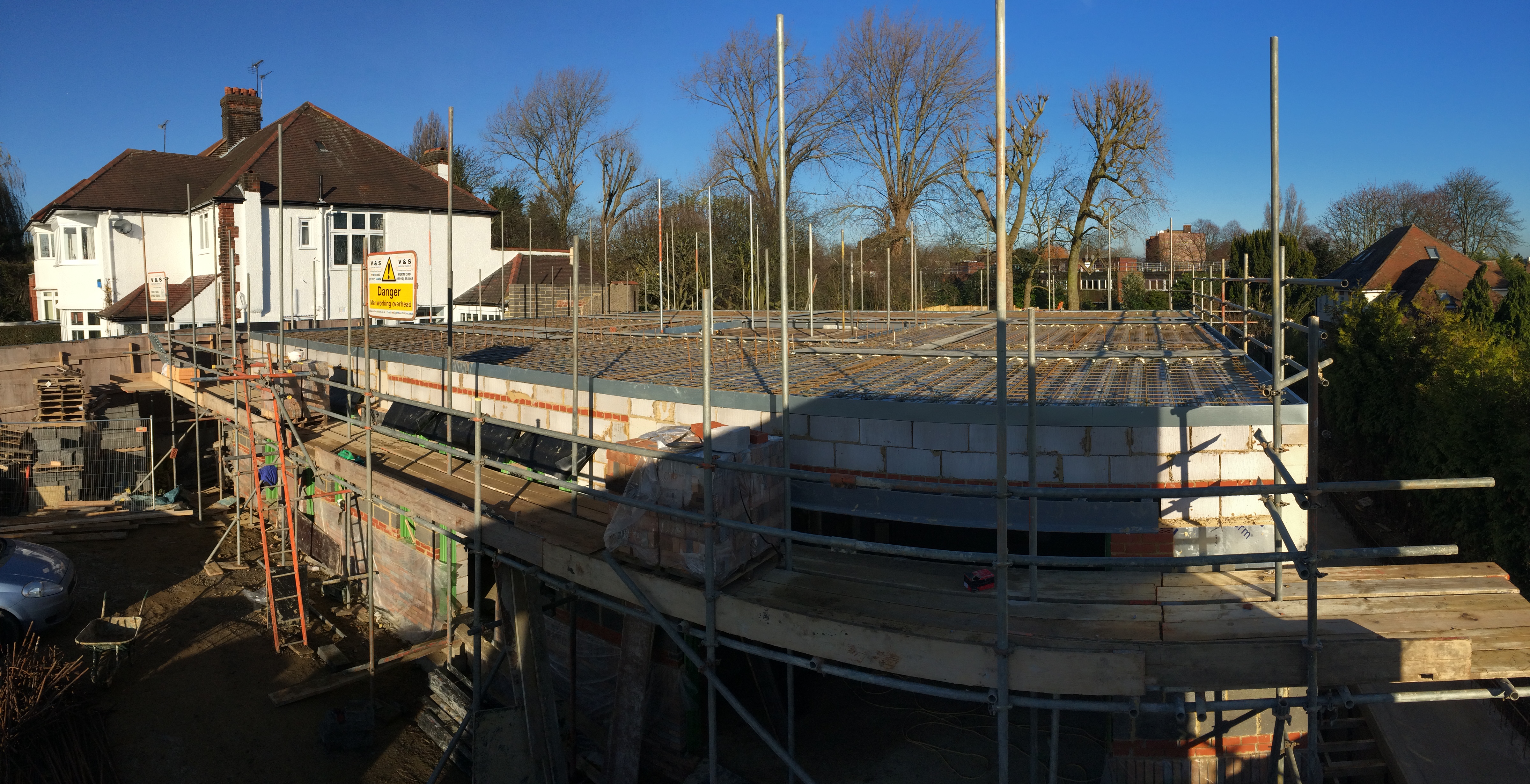 This was a large new build property in north west London. Together with the architect and client we negotiated the works to the specific requirements of both. The works required the demolition of the existing house, the formation of a 100m2 basement on piled foundations incorporating a plant room and bedrooms. The main space was an open plan kitchen and living space with the central stair atrium to the full height of the property. With such open construction in the property the structural design was key. Internal structural Stepoc walls and insitu cast concrete ring beams allowed these large open spaces.