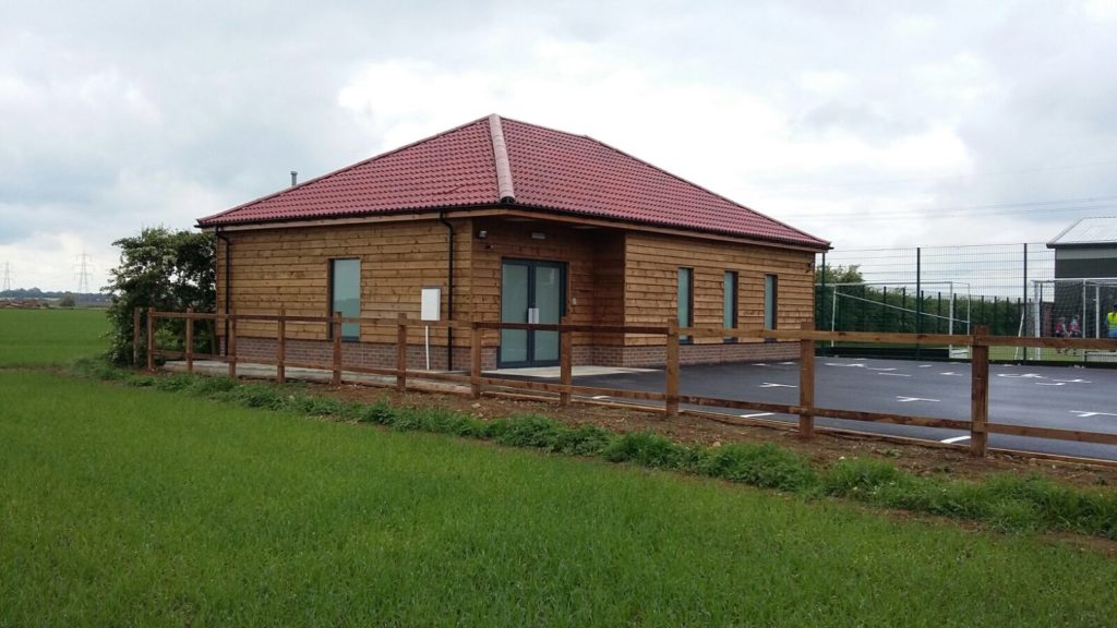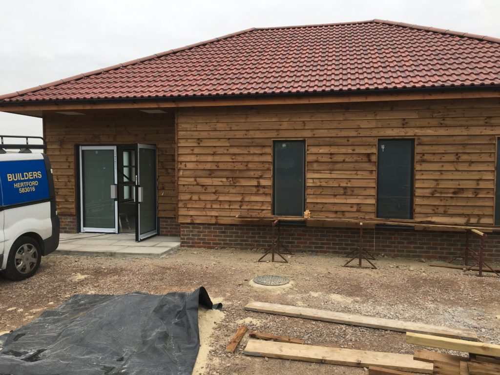 This was a new build gospel hall on the outskirts of Biggleswade. Internally the new hall is a spacious area with high ceilings, disabled toilets and a kitchenette. Externally the building is timber clad with terracotta roof tiles to soften the look against the surrounding countryside. A new crossover and access road was formed from the carriageway with ample parking and a close-boarded and post & rail fence were erected, with a five-bar gate to the entrance.