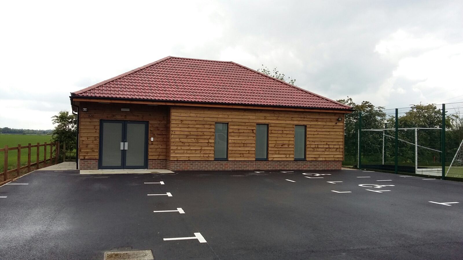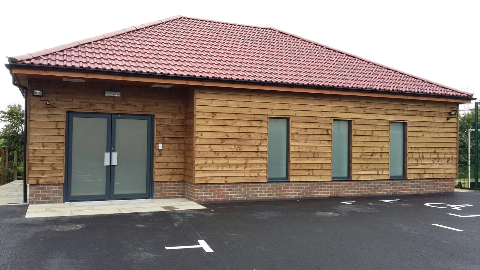 This was a new build gospel hall on the outskirts of Biggleswade. Internally the new hall is a spacious area with high ceilings, disabled toilets and a kitchenette. Externally the building is timber clad with terracotta roof tiles to soften the look against the surrounding countryside. A new crossover and access road was formed from the carriageway with ample parking and a close-boarded and post & rail fence were erected, with a five-bar gate to the entrance.
